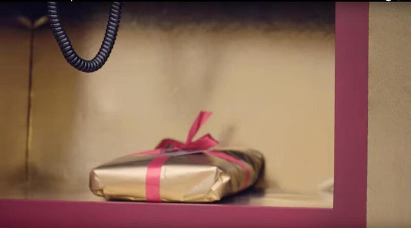In the video, titled "The Christmas Gift Experiment," commuters passing through the Birmingham New Street station in England approach a large red box labeled "free presents," and they receive a phone call from Santa, who asks if they would like a present.