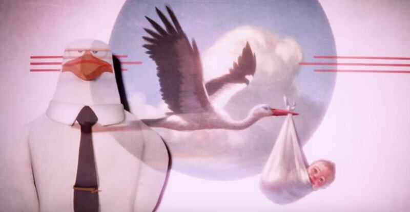 The movie follows Junior, a delivery stork, and Tulip, the sole human at Stork Mountain, as they deliver an unauthorized baby girl.