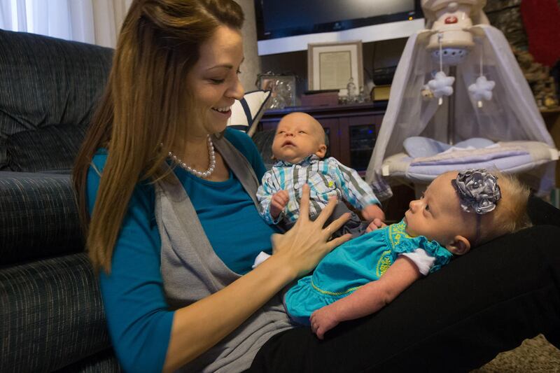 Then, six weeks ago, Christensen gave birth to twins: a girl and a boy, both healthy.