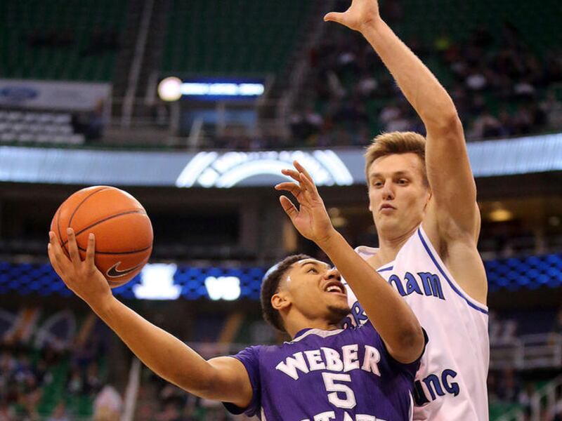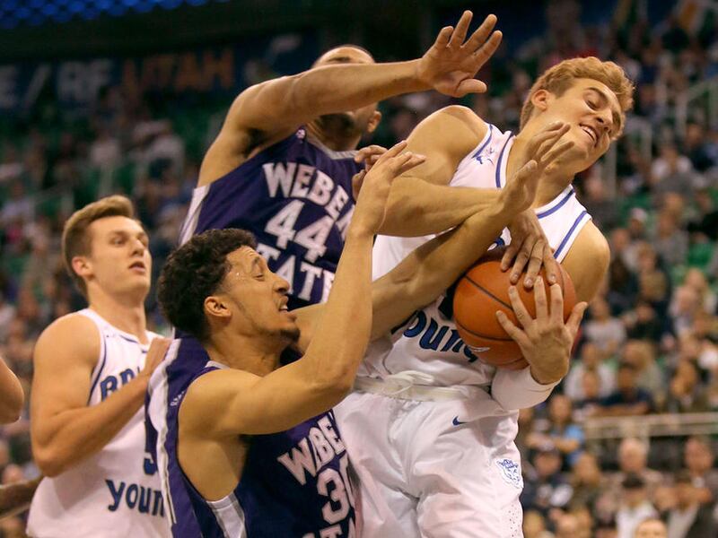 BYU struggled at times with Weber State’s top two players, guard Jeremy Senglin and forward Joel Bolomboy. Senglin entered the game shooting 58 percent from 3-point range and he went 4 of 7 from long distance and finished with a team-high 20 points. Bolomboy had a double-double with 12 points and 12 rebounds.
