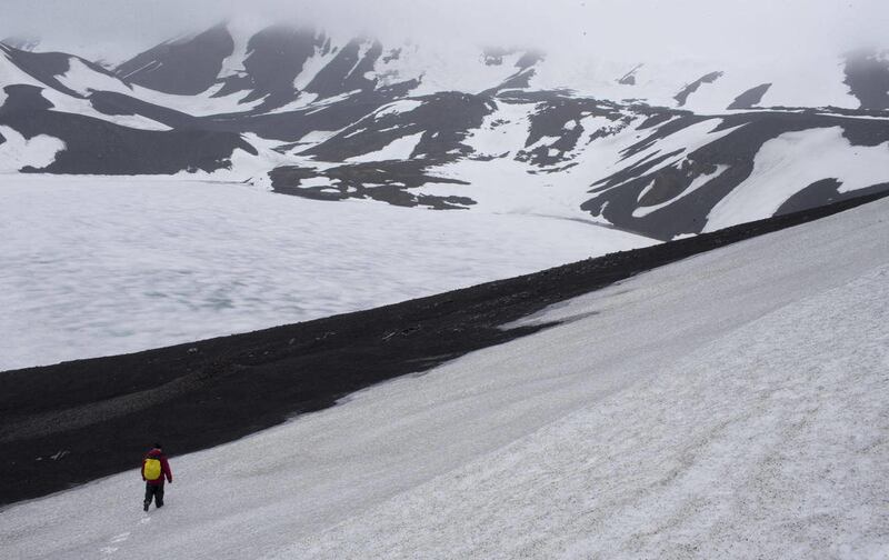 During a recent trip to Deception Island, Peter Convey, an ecologist for the British Antarctic Survey who has been visiting Antarctica for 25 years, braved heavy rain, near freezing temperature and winds of more than 20 knots to collect samples of the spongy green and brown mosses that grow in patches on the ash of the volcanic island's black rock mountains. He was looking for clues in their genetics to determine how long the species have been evolving on Antarctica, in isolation from other continents.