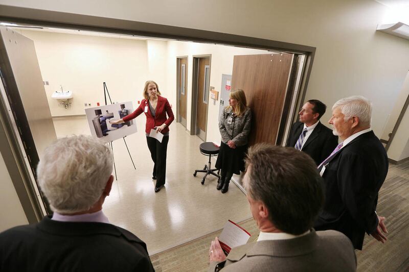 Price said the U-shaped floor plan with rooms designated for each step in the appointment was chosen with efficiency and patient accessibility in mind. Dark borders around furniture, walkways and doorways as well as patterned carpet were chosen to help those who are visually impaired navigate the center.