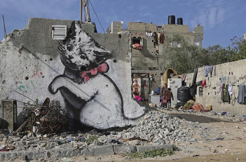 Mohammed Shenbary, 29, said a Western artist arrived with a Palestinian translator about three months ago and started painting on the remaining wall of his battered home in Beit Hanoun, in the northern Gaza Strip. He said the man looked to be in his mid-30s and painted the kitten in about a half hour.