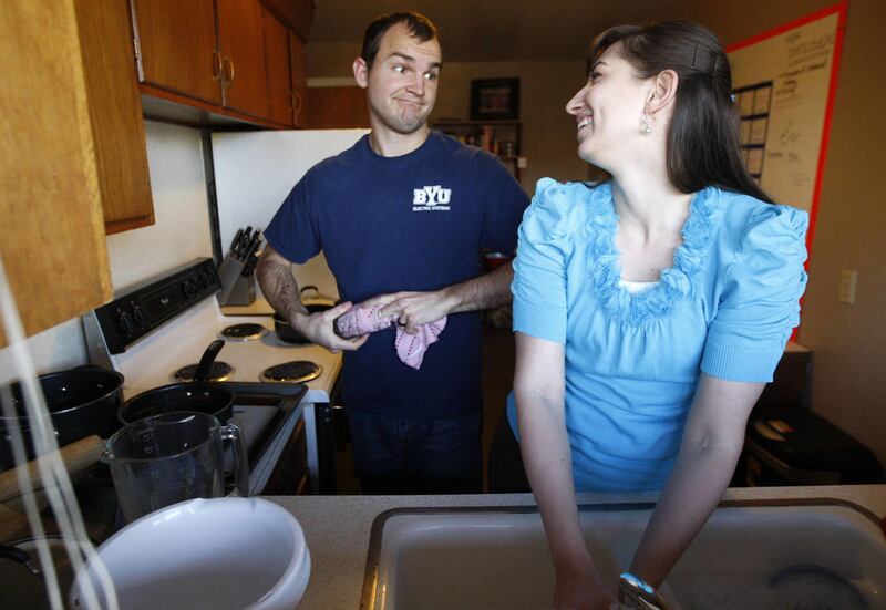 PROVO — When Stephen and Jessica Zimmerman come home, they settle into an easy routine. They talk about their day, eat dinner and start to clean up.
