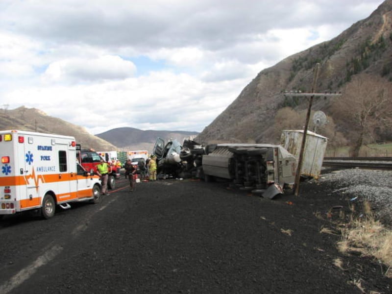 The semi downed nearby power lines and damaged a railroad control box when it rolled, according to UHP.