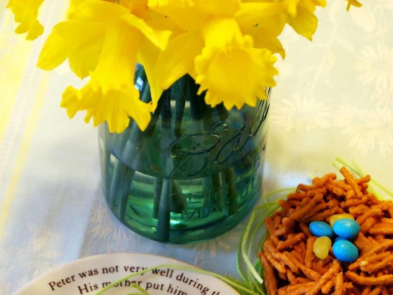 Using food-safe markers with edible ink, write the names of family and guests on large malted milk eggs or add a few jelly beans to each nest.