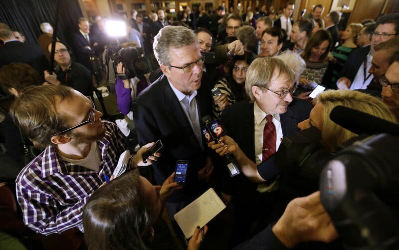 URBANDALE, Iowa — Former Florida Gov. Jeb Bush is standing by his support for a set of statewide school standards, called Common Core, even though it puts him at odds with some in his party.