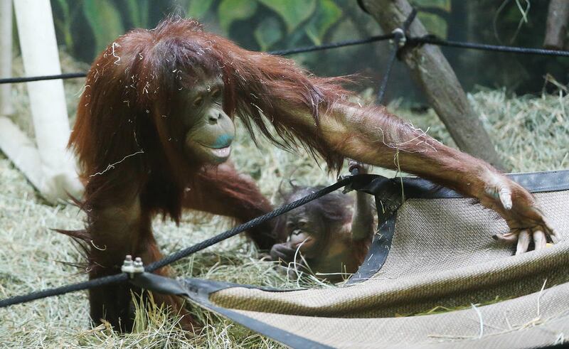On Saturday, Tuah spent a lot of time holding onto the ropes and occasionally wandered up to the glass, giving visitors outside the enclosure an up close glance.