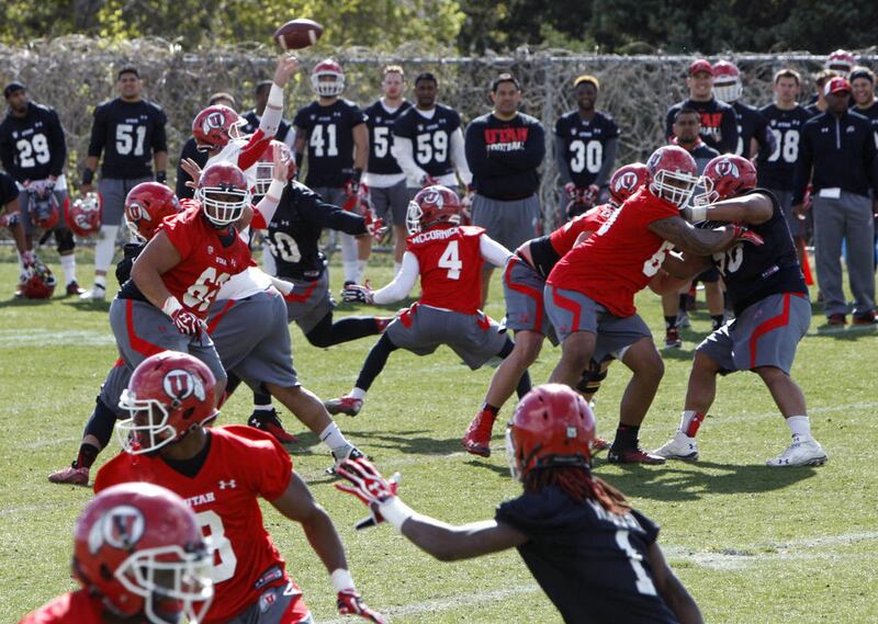 “Just making plays in the live work we had on Tuesday,” Whittingham said. “He made things happen. He’s got great leadership skills, and he’s starting to become much more in command of the offense. He hasn’t been around for a couple of years, the terminology and everything is new to him. He’s done a nice job of closing the gap.”