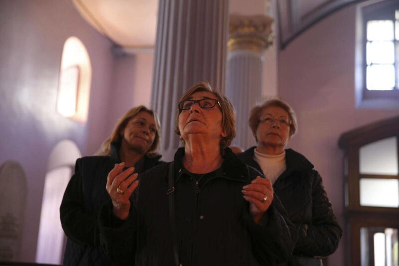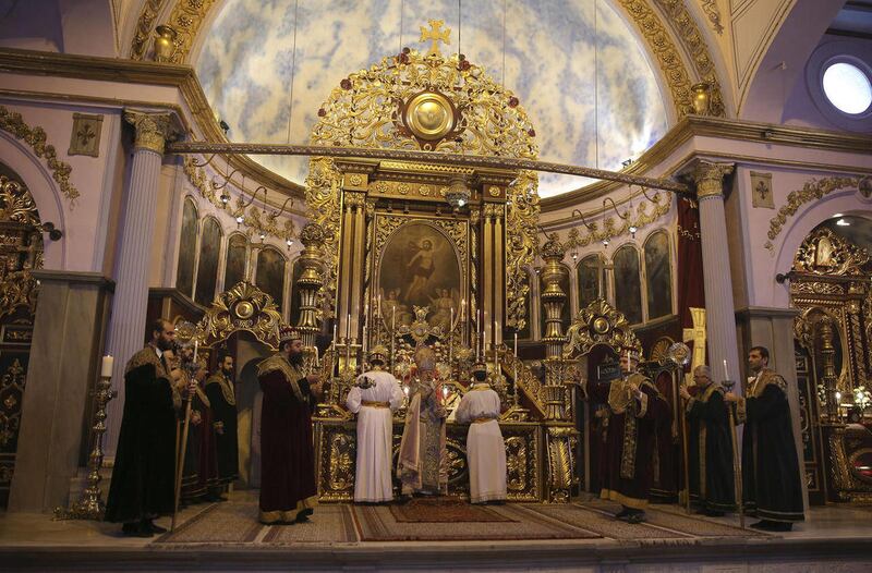 In Jerusalem's Old City, Armenian priests held a mass at St. James Cathedral, their chants rising to the sky in the cavernous century-old church adorned with hundreds of metal lamps as light filtered from the dome windows.
