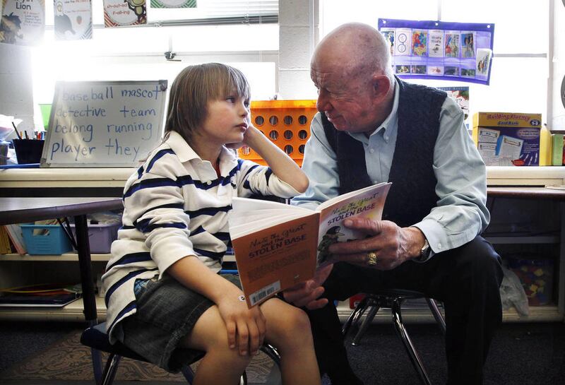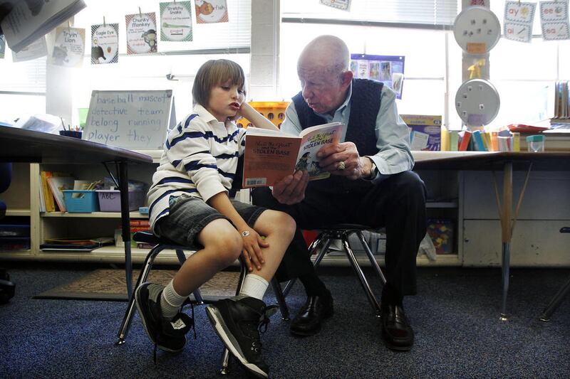 Ward, known to the children of Redwood Elementary School as "Mr. Gene," is a regular volunteer in the classroom of first-grade teacher Marta Welch. He has been teaching children to read for the past year, giving 10 to 15 minutes of critical individual coaching to each student.