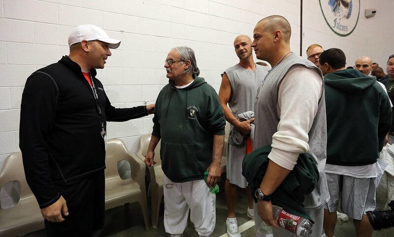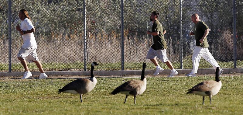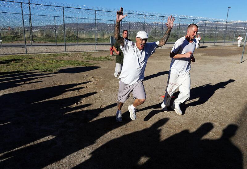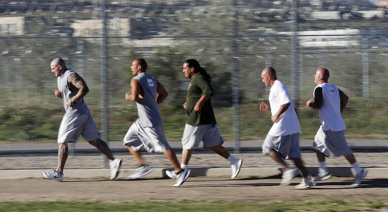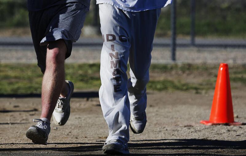 “It felt tacky at first,” he said, looking down at the cement slab where the runners gathered after they finished 16 laps around the facility’s dirt recreation yard. “I closed my eyes, and after I said it a few times, I started to believe it. Then it came true.”