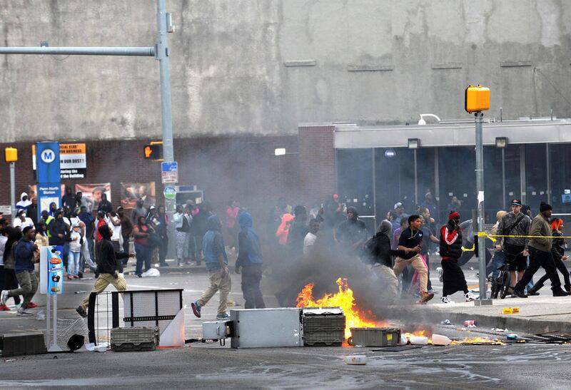 The riots started hours after the funeral for Freddie Gray. He suffered a critical injury while in police custody.