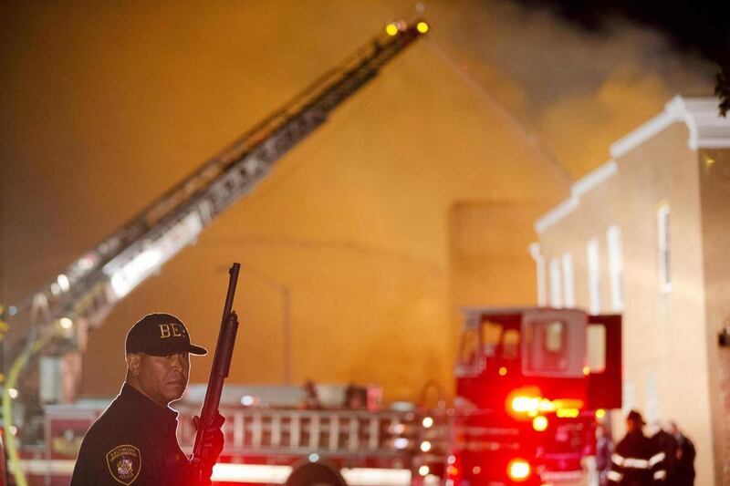 Police say one person was critically injured in a fire during the riots in Baltimore.