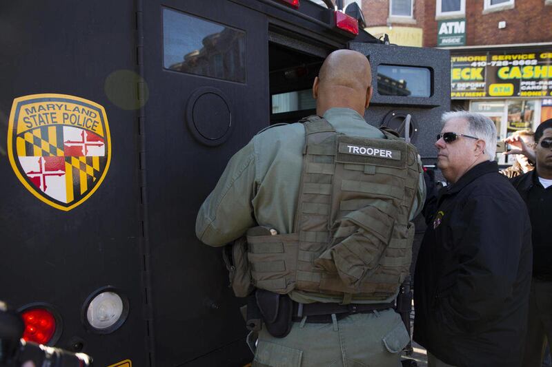 Gov. Larry Hogan said at a news conference Tuesday that there had been no incidents in the morning, but he does worry about what will happen at night. Hogan declared a state of emergency about three hours after the riots started Monday afternoon.