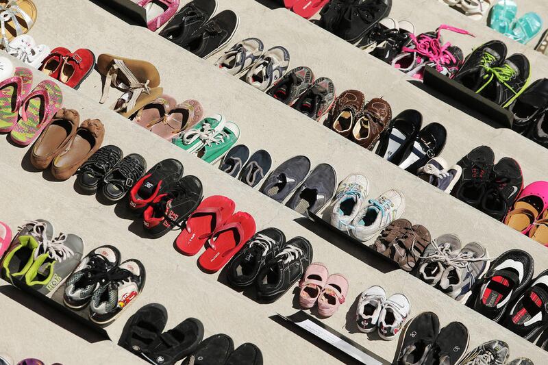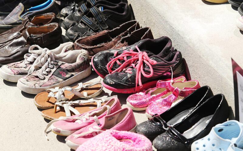“This is far too many,” she said, gesturing to the standing army of sneakers. “We hope to one day see zero shoes.”