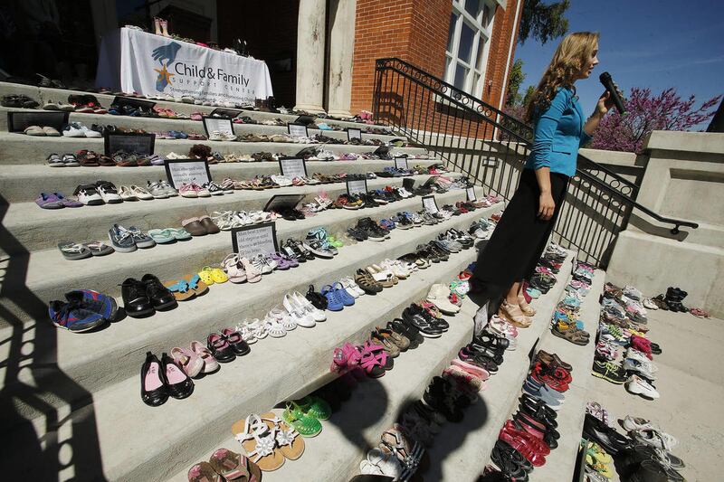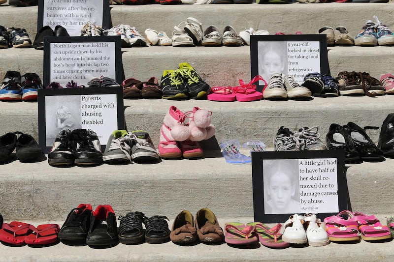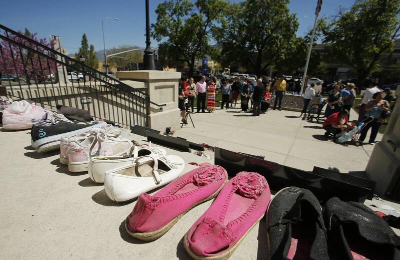LOGAN — Rain boots, sandals, sneakers and heels: The children’s shoes lining the steps of the Cache County Courthouse Wednesday spanned all varieties.