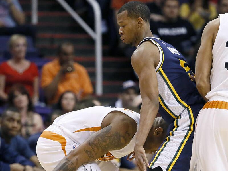 GAME NOTES: Turnovers were a problem for the Jazz, who had averaged just 12 turnovers over their past five games. However they had 13 before the first half was over and ended up with 18 for the game . . . The Jazz dominated the boards, outrebounding the smaller Suns 47-32 . . . Trey Burke missed the game because of a sore lower back . . . After getting 12 assists Wednesday night against Denver, Exum had just three assists, but scored nine points . . . The Suns were playing without Brandon Knight, who was acquired in a trade with Milwaukee in February, but has missed 11 of 12 games with an ankle injury . . . The two teams had split their previous two games this year with the Jazz winning 118-91 in Utah in early November and losing 100-93 in early February.