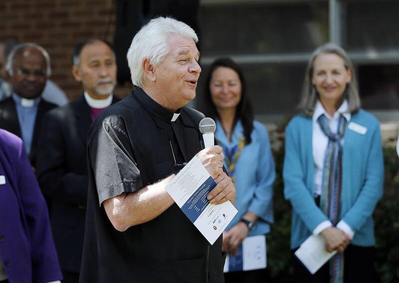 Rev. Harold Straughn of Unitarian Church prayed that the roof, frame, brick, beams and windows would remain sturdy for both guest and host in the hospice; also, asking that those who came to the building could "find it a house of joy, even at the end of life."
