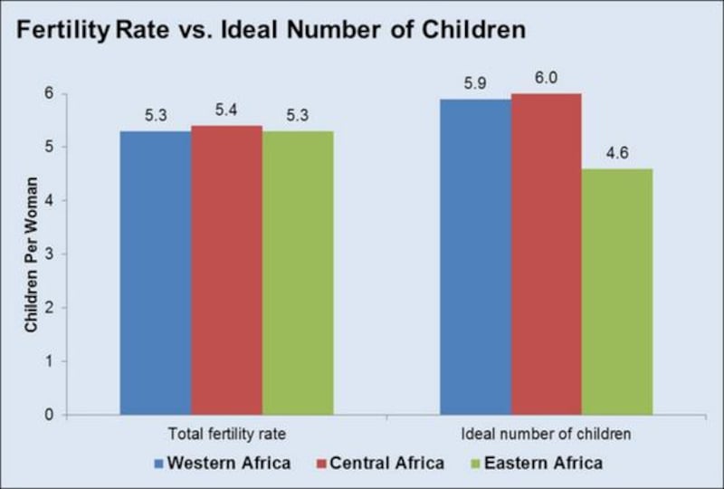 According to Elizabeth Leahy Madsen, who wrote about the study for New Security Beat, there is a strong correlation between the high fertility rates and an actual preference for more children. The big exception is in the Eastern African region, which has high fertility rates, and a much lower "ideal number of children."