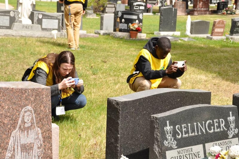 They were there to take pictures of headstones with their smartphones. After the photographs were uploaded to an app called BillionGraves, names and other information from the headstones were added to a database so that anyone around the world searching for their ancestors could find the grave.