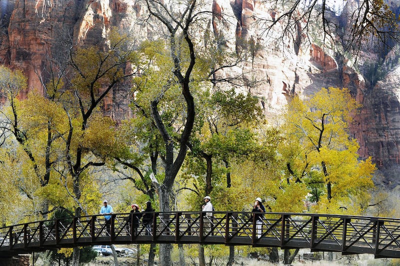 "The green leaves against the red rocks makes it spectacular," said Vermont tourist Aaron Beaudin, standing on a footbridge that spans the Virgin River in the heart of Zion Canyon.