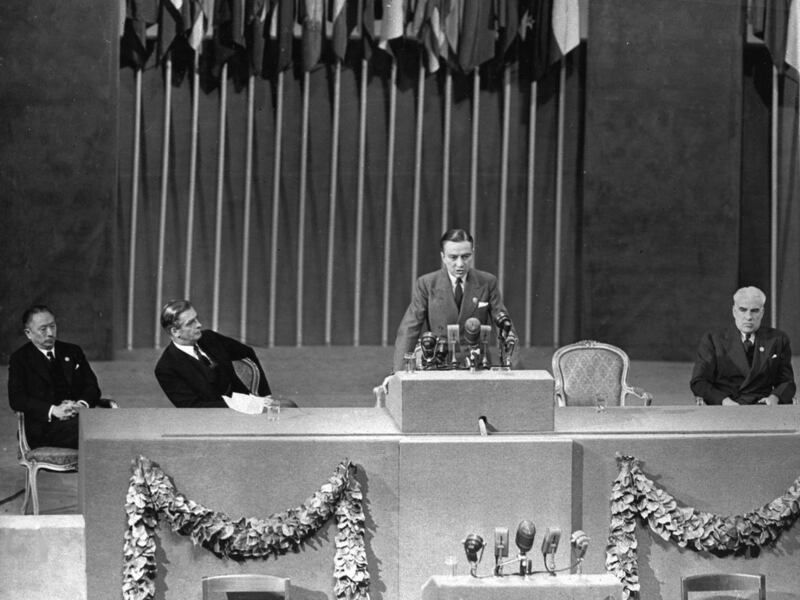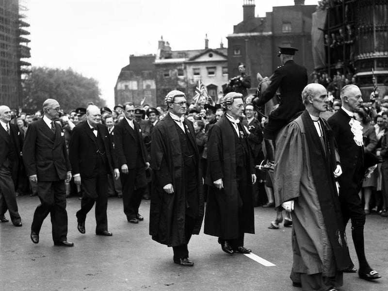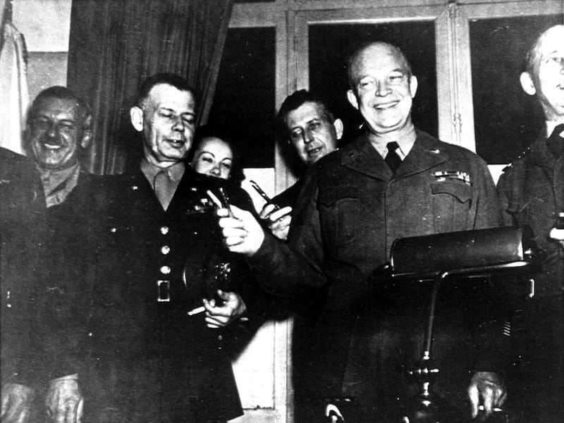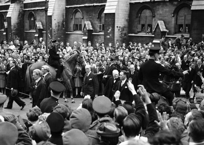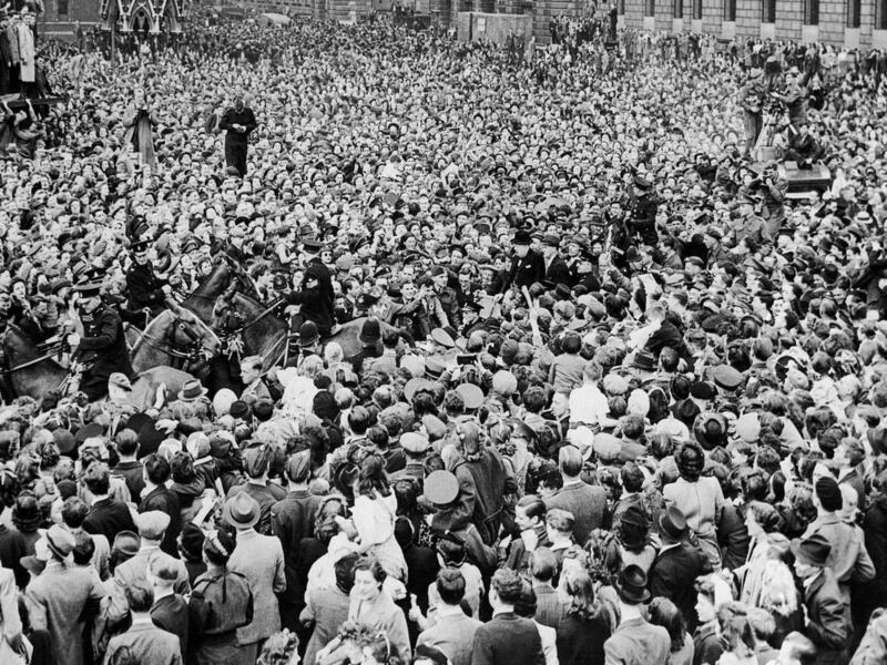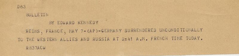 "This is a solemn but glorious hour. General Eisenhower informs me that the forces of Germany have surrendered to the United Nations. The flags of freedom fly all over Europe."