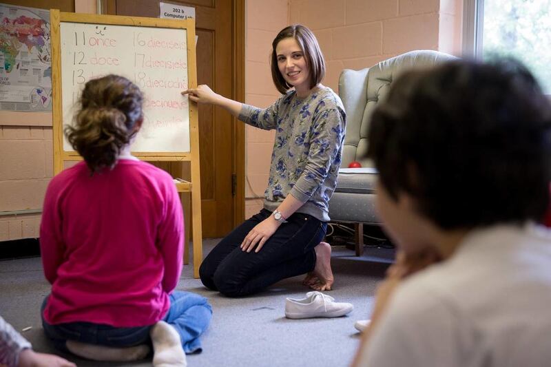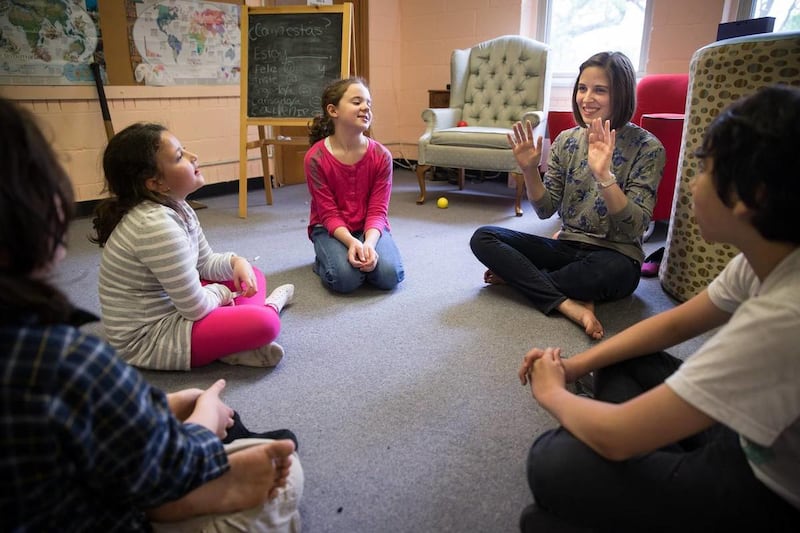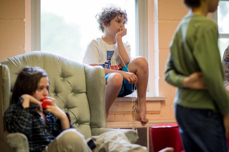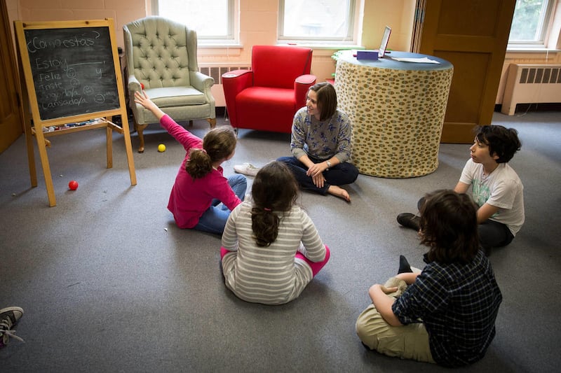 Later, Tornquist conducts a Spanish class, with kids clustering around a laptop. A barefoot Ike Banks, 9, Ollie and Zeke’s older brother, observes the class from across the room. He’s perched on a windowsill, his legs draped over a couch.