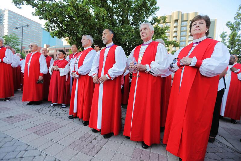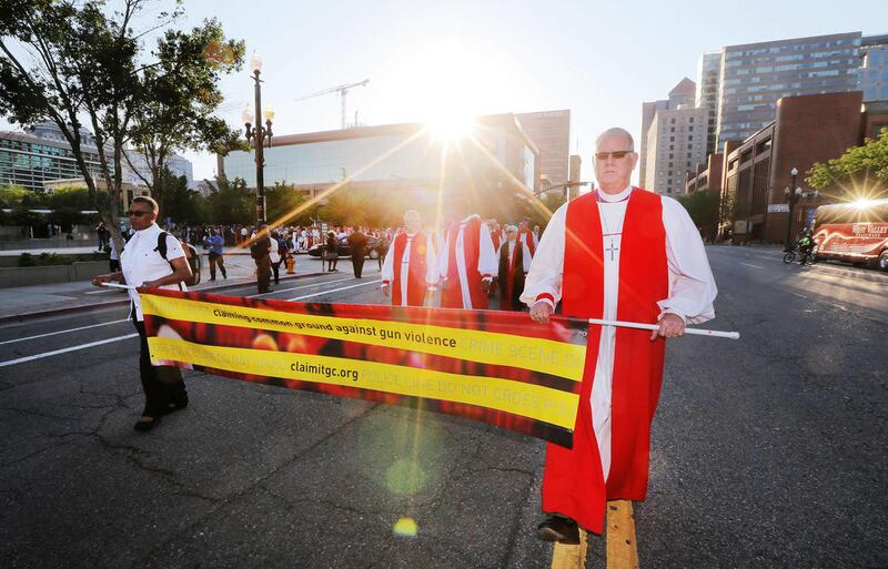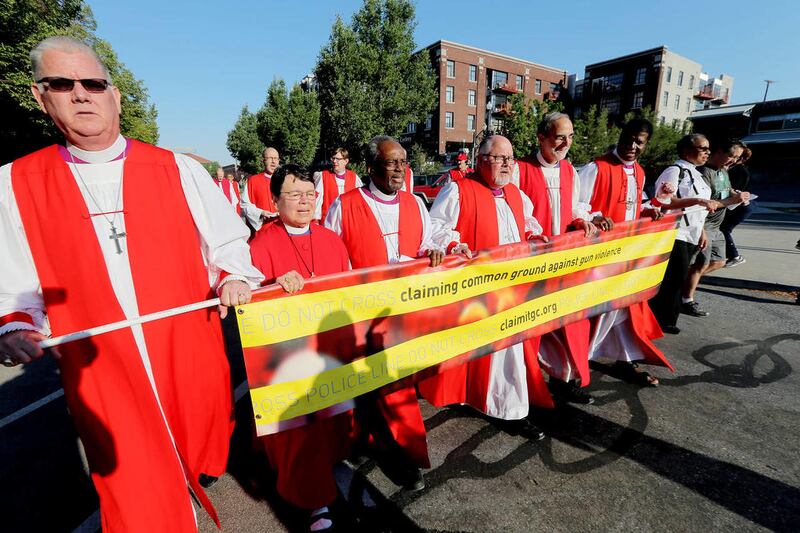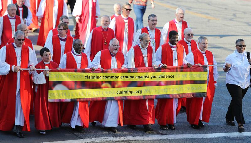 The procession was led by Bishops United Against Gun Violence, an ad hoc group of Episcopal bishops who seek to reduce incidents of gun violence and advocate for policies and legislation that save lives.