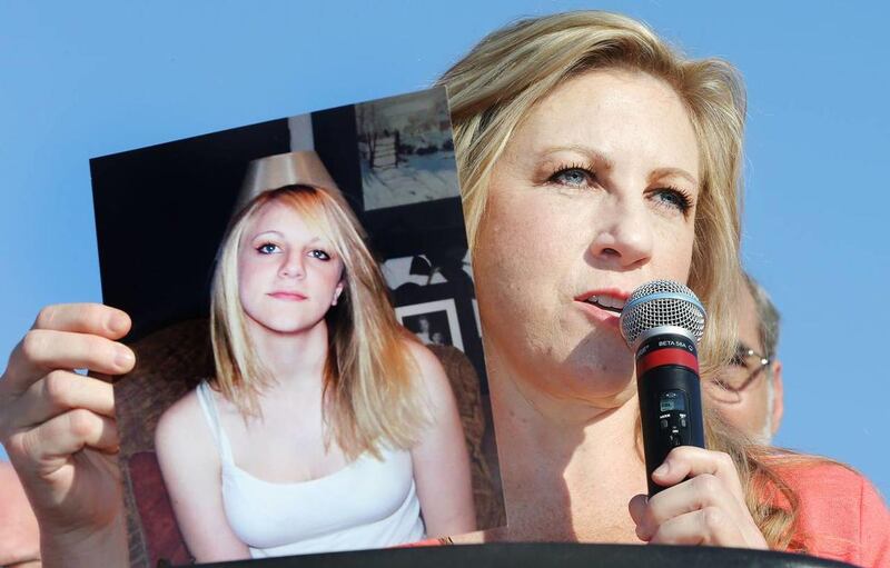 Utahn Carolyn Tuft, one of nine people shot during the siege at Trolley Square on Feb. 12, 2007, addressed the rally. Tuft's 15-year-old daughter, Kirsten Hinckley, was one of five people killed at the shopping mall that day.