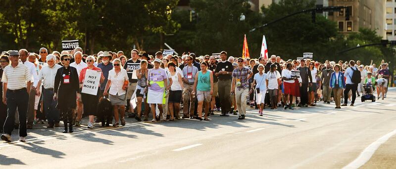 "I am hoping and praying that by us being together and making a witness, perhaps we can start the conversation that has not been had across the country, the conversation to bring all people together to say, 'We need to simply stop,'" he said. "Responsible gun owners do not want their guns used in this way. We don't want it because God values every human life, because every human life matters. Today we make a witness to say, 'Let us be the people that will speak out and make this happen in our country.'"