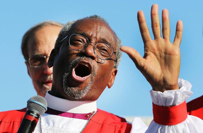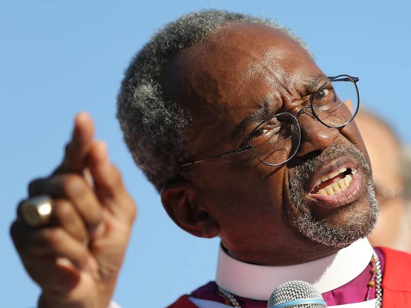 "We are here because that unholy trinity threatens the life of us all," said the Rt. Rev. Michael Curry, presiding bishop-elect of the Episcopal Church.