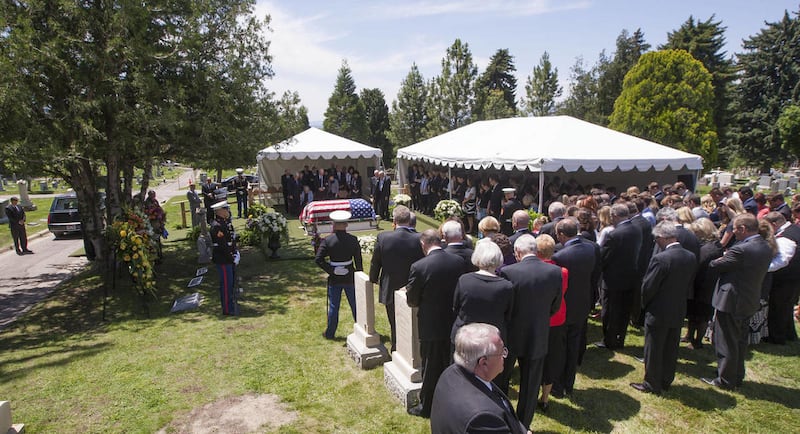 More than 2,800 attended the funeral in the Tabernacle and in overflow seating in the Assembly Hall on Temple Square. The Tabernacle audience included fours rows of family, dozens of LDS leaders, Utah Gov. Gary Herbert, Salt Lake City Mayor Ralph Becker, Utah Jazz owner Gail Miller and BYU President Kevin Worthen.