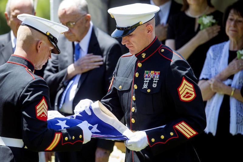 Throughout the funeral, a folded American flag honoring Elder Perry's service as a Marine in World War II sat on a podium by the casket.