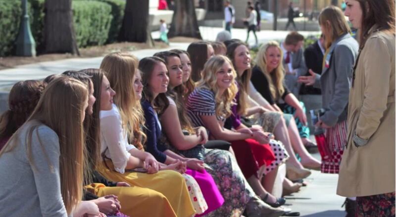 Eighteen future sister missionaries for The Church of Jesus Christ of Latter-day Saints gathered at Temple Square on March 7, reciting Doctrine and Covenants 4 and visiting with sisters serving at Temple Square. The experience was captured in a video produced by ldsmissionaries.com.