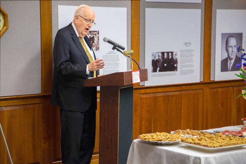 The second section, “Nourishing the Roots,” highlights the contributions of 12 LDS members including President J. Reuben Clark, J. Willard Marriott Sr. and James Henry Moyle. President Ezra Taft Benson is featured as the first president of the Washington Stake along with his counselors Samuel R. Carpenter and Ernest L. Wilkinson. In his remarks at the opening of the exhibit on June 13, Scott Parker, former bishop of the Capitol Hill Ward and a grandson of President Benson, observed how special the Washington area is to his family.