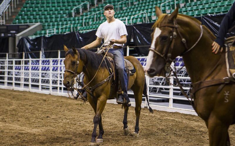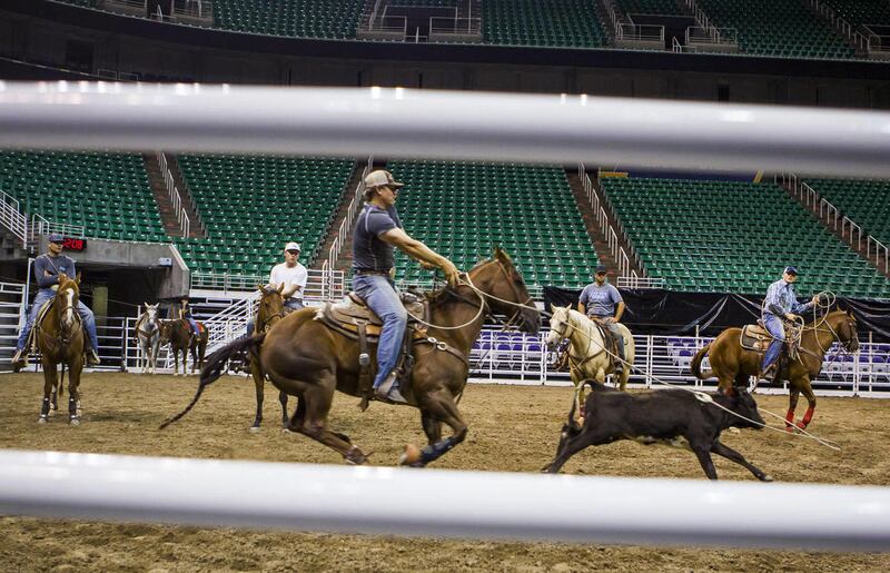 That may have been a good thing, as a runaway calf decided to take his own sneak peek of the arena, trotting around the dirt-covered arena floor until it was brought back to its pen.