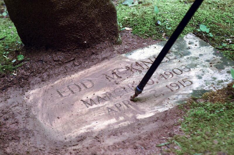 Don Smith, Edd McKinley's nephew, carried the slab to the grave site, where it was laid at the foot of the nondescript chunk of fieldstone that had marked the wandering boy's final resting place for 60 years.