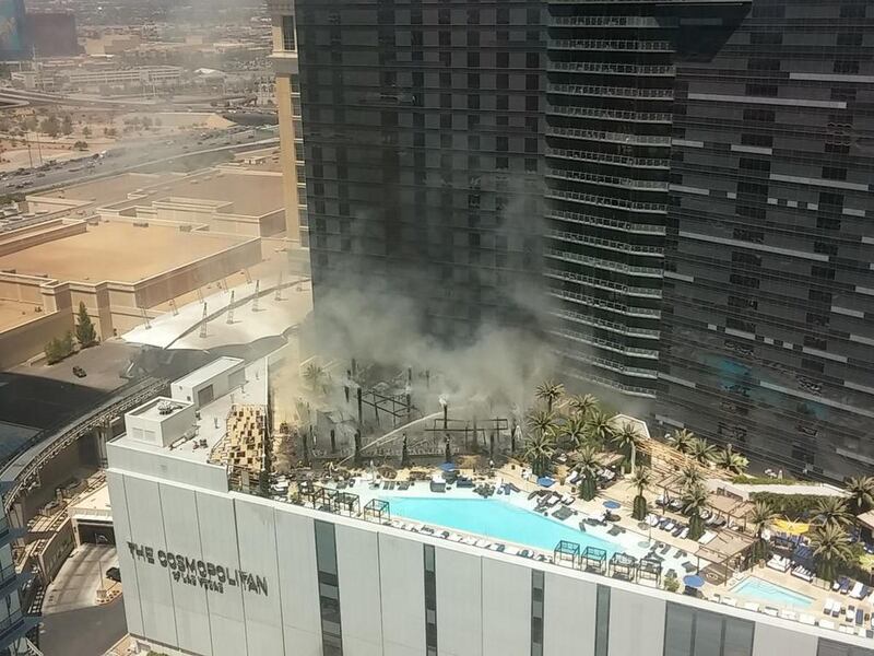LAS VEGAS (AP) — A Las Vegas high-rise hotel has reopened its rooftop swimming pool where a fire sent patrons running and black smoke billowing above the Strip.