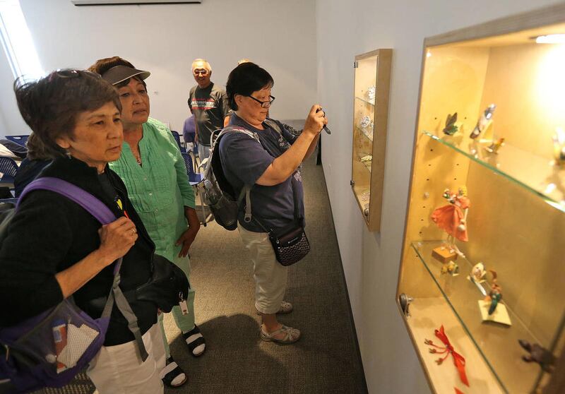 The museum’s current exhibit features about 70 pieces of art, with more in storage. In addition to the art, there are dolls made of shells from ancient Lake Bonneville, a rebuilt recreation hall, a replica housing unit, documents, photographs and other artifacts.
