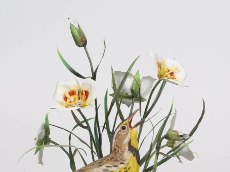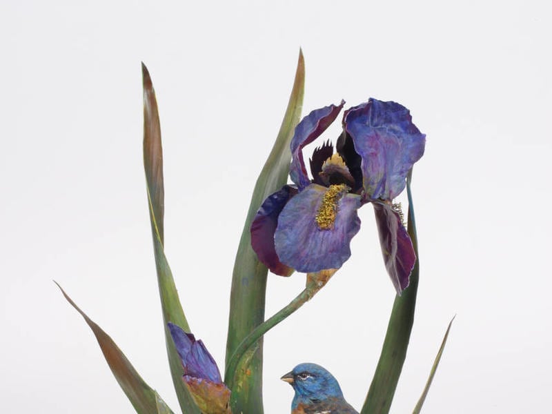 In his spare time, he carved and painted life-size birds from wood, sculpting from copper the leaves and blossoms on which they perch. He also painted birds in acrylic and oil. For many years, he and his wife kept a pen of peacocks, pheasants and other fowl, so he had plenty of birds to use as models for his artwork.