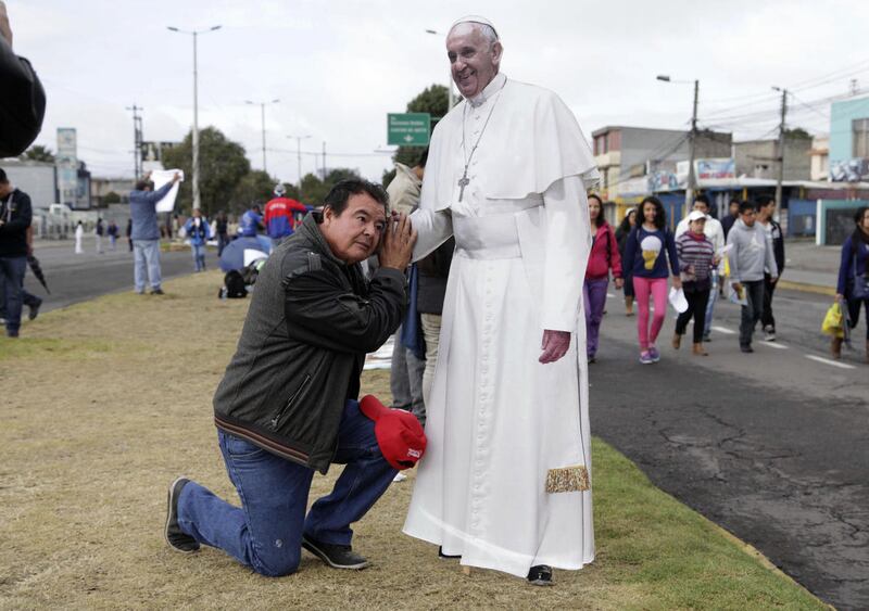 Nineteen-year-old college student Jennifer D'Angelo will be in school when Pope Francis visits her hometown, the AP reported, so she took the opportunity to pose with a two-dimensional cutout of the pope on display at a food court.