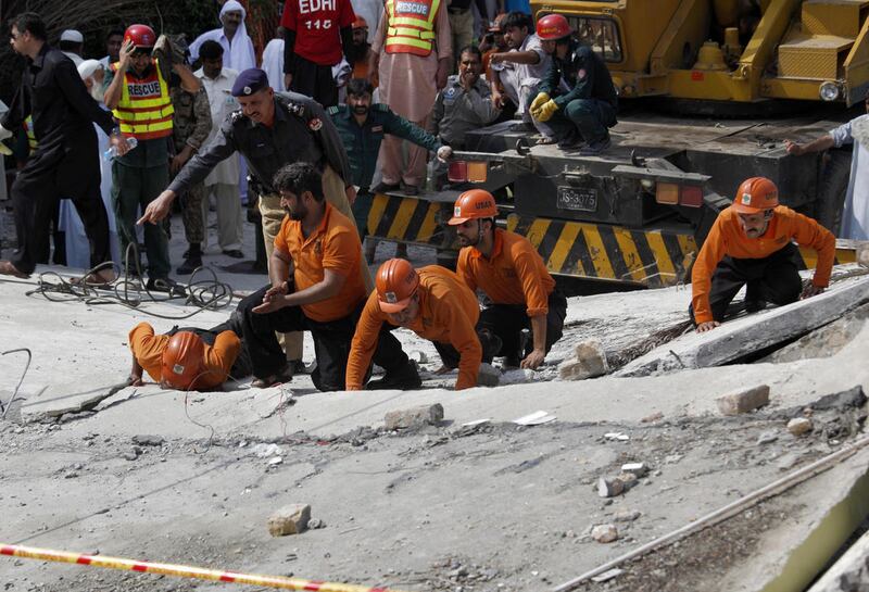 Live Pakistani TV footage showed rescue workers and cranes working at the site of the collapsed house. "We're working with all care. We will save anyone who is alive," Shahnaz, the rescue official, said.