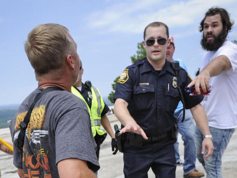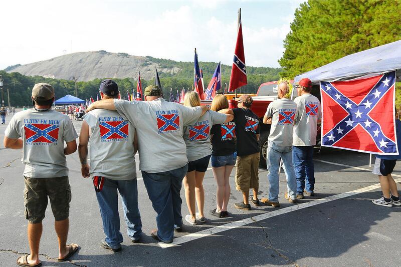 Hundreds of Confederate flag wavers gathered this weekend in Georgia's Stone Mountain Park, home to the huge "Confederate Memorial Carving" featuring Confederate President Jefferson Davis, General Robert E. Lee and General Thomas "Stonewall" Jackson.