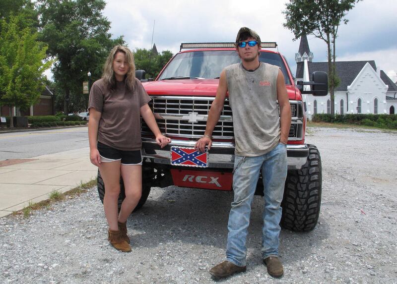Carson Kimsey, 23, came to Hayes' shop hoping for a flag to fly outside his Elbert County, Georgia, home. Kimsey gave a few different answers about the Confederate flag license plate on his pickup truck, then looked down for a second when asked if he ever thinks about how blacks feel when they see it.