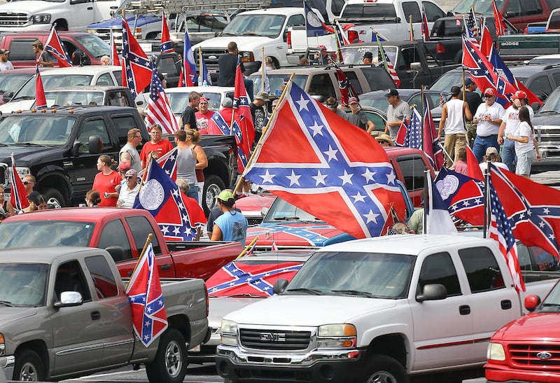 In eastern Michigan, flag supporters staged a rolling rally, with more than 50 vehicles participating. And in Florida, an estimated 2,000 vehicles adorned with the Confederate battle flag rallied outside a government complex in Ocala, with many demonstrators sporting shirts with phrases like "heritage not hate."