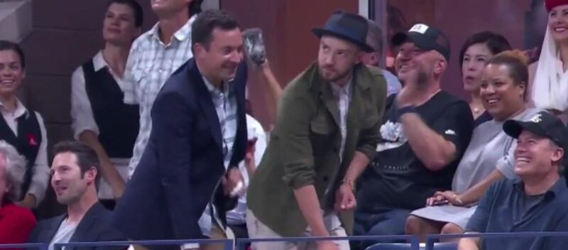 Comedian Jimmy Fallon and singer Justin Timberlake put on their own show Wednesday while professional tennis players Roger Federer and Richard Gasquet faced off at the US Open Tennis Championships.