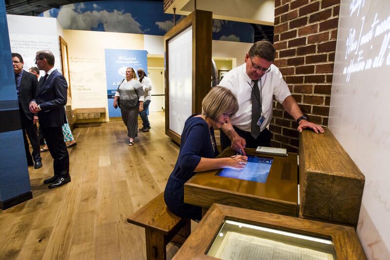For example, after examining early Book of Mormon-related documents and images of a seer stone, visitors can sit at a small desk and use modern technology to attempt to be a scribe.