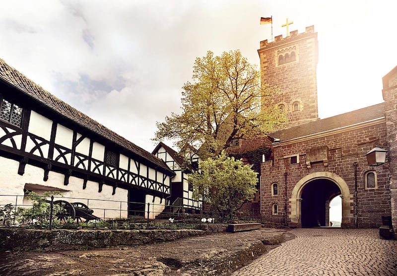 It stands on a 1,350-foot precipice above the Thuringian town of Eisenach, where the reformer Martin Luther attended school and sang in the boys choir and where, later, the composer Johann Sebastian Bach was born. In 1777, Johann Wolfgang von Goethe spent five weeks in the castle, sketching its buildings. In 1999, UNESCO included Wartburg among its World Heritage Sites.