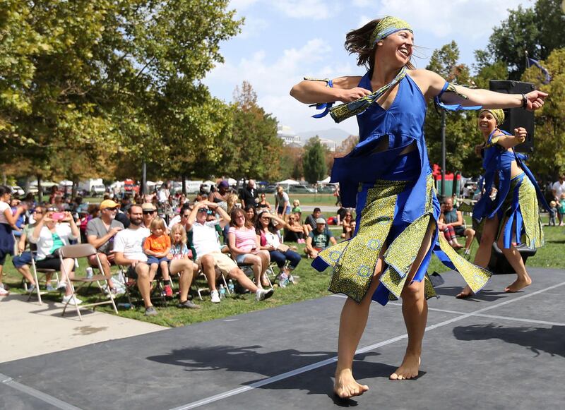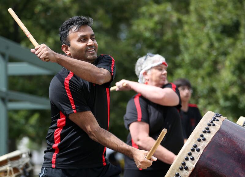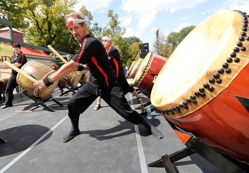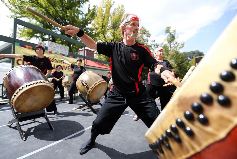 Michael Darger performs with the Japanese Kenshin Taiko Drummers during the Celebration of Cultural Diversity Performing Arts Festival at Pioneer Park in Salt Lake City on Saturday, Sept. 5, 2015.